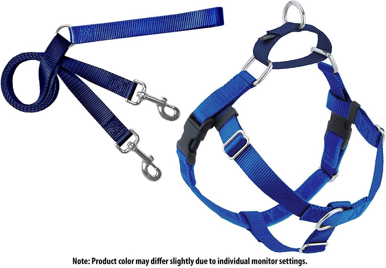 The 2 Hounds Design Freedom No-Pull Harness features a martingale loop on the back of the harness that tightens gently around your dog's chest to discourage pulling as well as a front loop for ultimate control. Perfect for all dogs: Great control, four points of adjustability and maximum comfort and safety make this harness perfect for puppies as well as adult and senior dogs of all breeds. It is also great for dogs with amputations, arthritis or other injuries. The Freedom Harness features a ring on the front of the chest for an additional control point which lets you "steer" your dog and redirect his or her attention which make leash training easier. Using a double ended leash allows you to connect to the front and back of the harness simultaneously, allowing you to steer your dog like using the reins on a horse and redirect its attention back to you. It's easy to put on and take off, and it's washable. The 2 Hounds Design Freedom Training Package includes training instructions and the double ended leash. The Training Leash allows you to connect to the front and back of the harness simultaneously. Alternatively you can use the training leash to connect to the harness and a collar at the same time, providing additional control points.