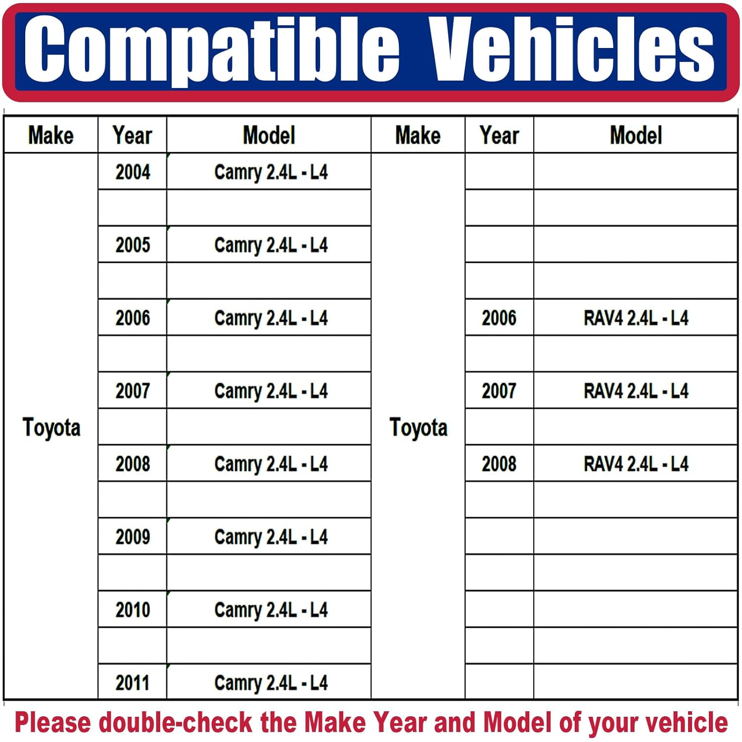 Compatible with Toyota For 2006 Toyota RAV4 2.4L L4 For 2007 Toyota RAV4 2.4L L4 For 2008 Toyota RAV4 2.4L L4 For 2004 Toyota Camry 2.4L L4 For 2005 Toyota Camry 2.4L L4 For 2006 Toyota Camry 2.4L L4 For 2007 Toyota Camry 2.4L L4 For 2008 Toyota Camry 2.4L L4 For 2009 Toyota Camry 2.4L L4 For 2010 Toyota Camry 2.4L L4 For 2011 Toyota Camry 2.4L L4