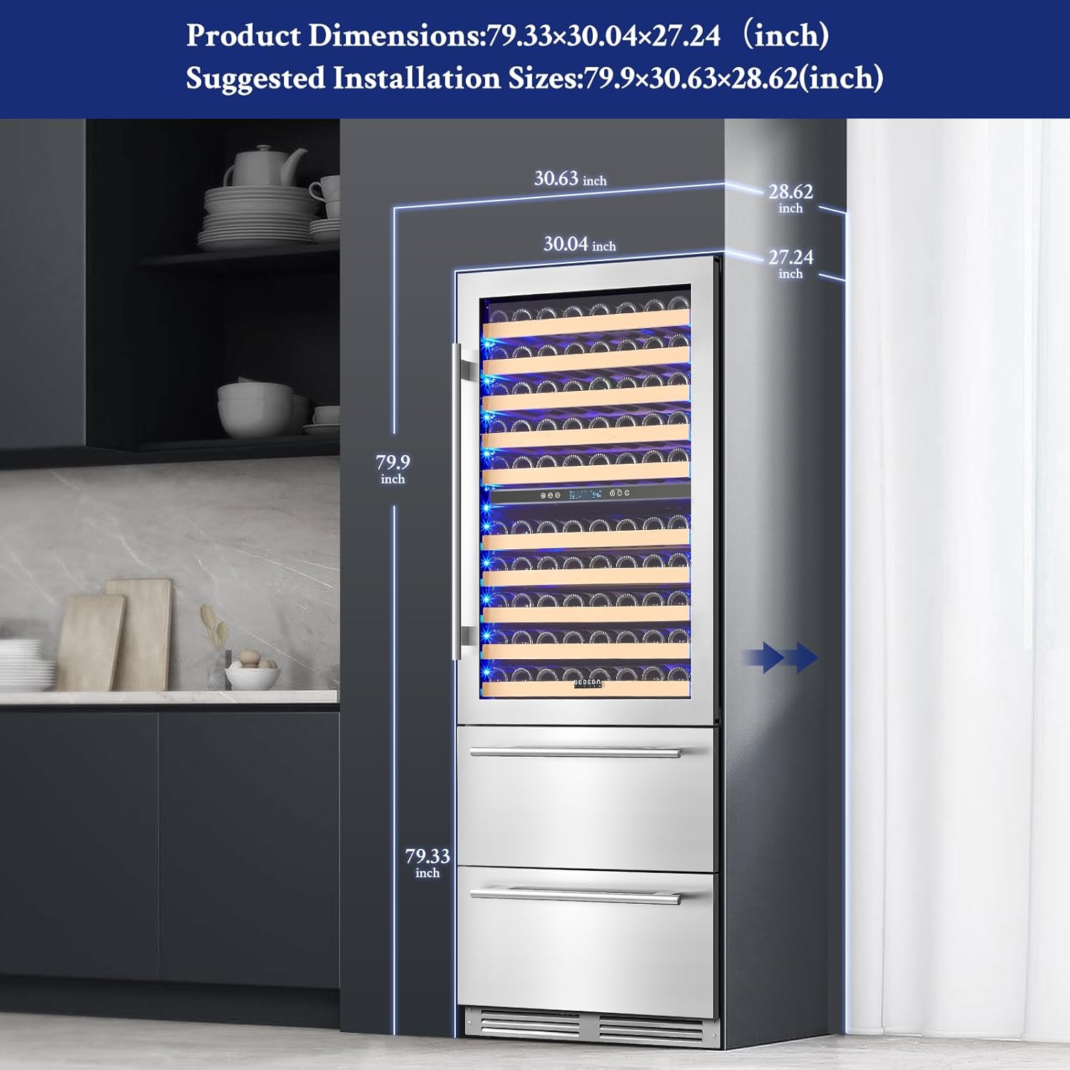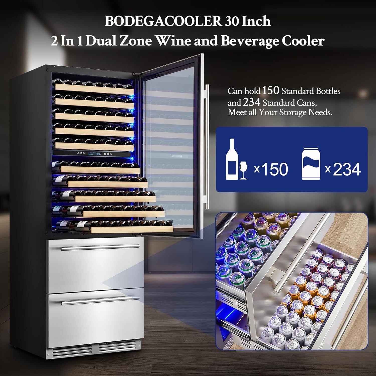 | Configuration | Dual zone wine cooler & two beverage drawers,Glass stainless steel wine cooler door,Handle*3,Manual, |