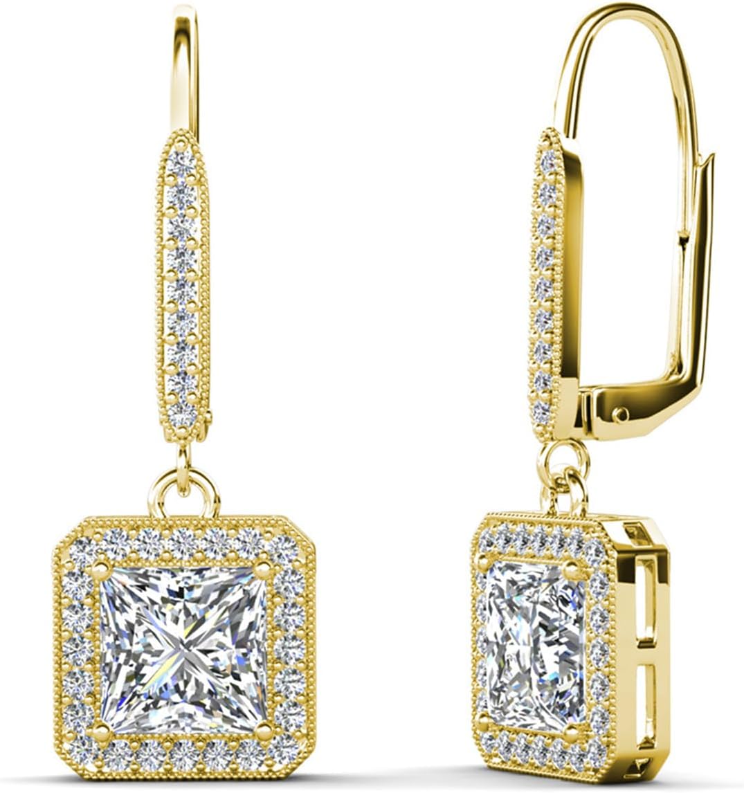 • Elegant Princess Cut Design: The Cate & Chloe Ivy Faithful dangle earrings showcase a radiant princess cut simulated diamond surrounded by sparkling accents. Available in white gold-plated, yellow gold-plated, or rose gold-plated for versatile elegance that captures attention.