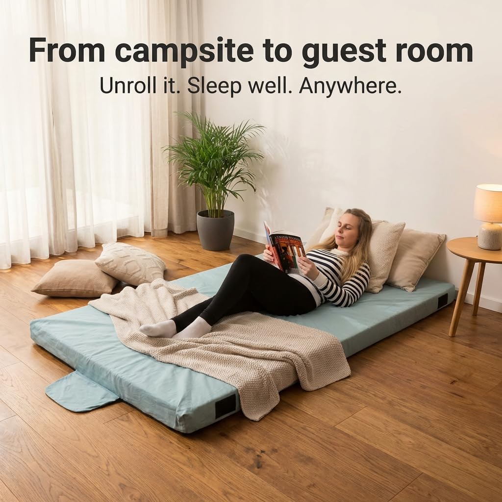| Included Components | Certipur and Oeko Tex Certified Mattress, Easy to Roll and Transport Multi Use Mattress for Car Camping, Tent , Guest room, Portable Heavy Duty Carry Bag with Handles, Removable and Washable Sleeping Pad Cover with Antislip Back, Waterproof Cover with Heavy Duty Carry Straps and Phone Pocket |