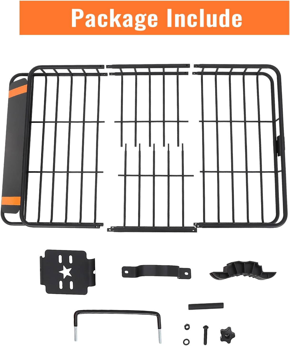 ### TacleeKii Roof Rack Basket - 51"x36"x5" Cargo Carrier, 200LBS Heavy Duty, Versatile Design, Easy Installation, Black Car Top Luggage Holder for SUV, Truck, RV Camping StorageElevate your travel experience with the TacleeKii Roof Rack Basket, the ultimate roof storage solution for any vehicle. Designed with versatility in mind, this PU roof luggage rack car top carrier seamlessly fits SUVs, trucks, and RVs, offering a universal fit that adapts to your needs. Whether you're gearing up for a camping trip, road trip, or any outdoor adventure, this automotive luggage rack is your go-to companion.#### Key Features:**Versatile Design:** The TacleeKii Roof Rack Basket features a versatile design, making it the perfect roof storage solution for any vehicle. It seamlessly fits SUVs, trucks, and RVs, offering a universal fit roof rack that adapts to your needs. Ideal for camping, road trips, and outdoor adventures.**Dimension and Load Capacity:** With dimensions of 51"x36"x5", this heavy-duty luggage rack can support up to 200LBS, providing ample space and strength for all your cargo. Whether you're carrying camping gear, luggage, or sports equipment, this lightweight luggage carrier has you covered.**Easy Installation:** Designed for hassle-free setup, the TacleeKii Roof Rack Basket offers easy installation without the need for special tools. Its adjustable roof rack system ensures a secure fit on any vehicle, making it a convenient and efficient roof storage solution.**Heavy-Duty Construction:** Built to last, this PU roof luggage rack car top carrier is crafted from high-quality materials, ensuring durability and reliability. The black powder-coated finish adds a sleek look while protecting against rust and corrosion, making it a long-lasting addition to your vehicle.